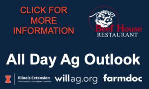 The meeting is hosted by the farmdoc team from the University of Illinois Department of Agricultural and Consumer Economics, WILLAg.org, University of Illinois Extension, and Illinois Public Media. The All Day Ag Outlook was first hosted at the Beef House in March of 1991. “The event always anchors farm-related decisions from what crops to plant and when to market to how world events are influencing commodity exports,” said organizer and host Todd Gleason, farmdoc team member and University of Illinois Extension farm broadcaster.